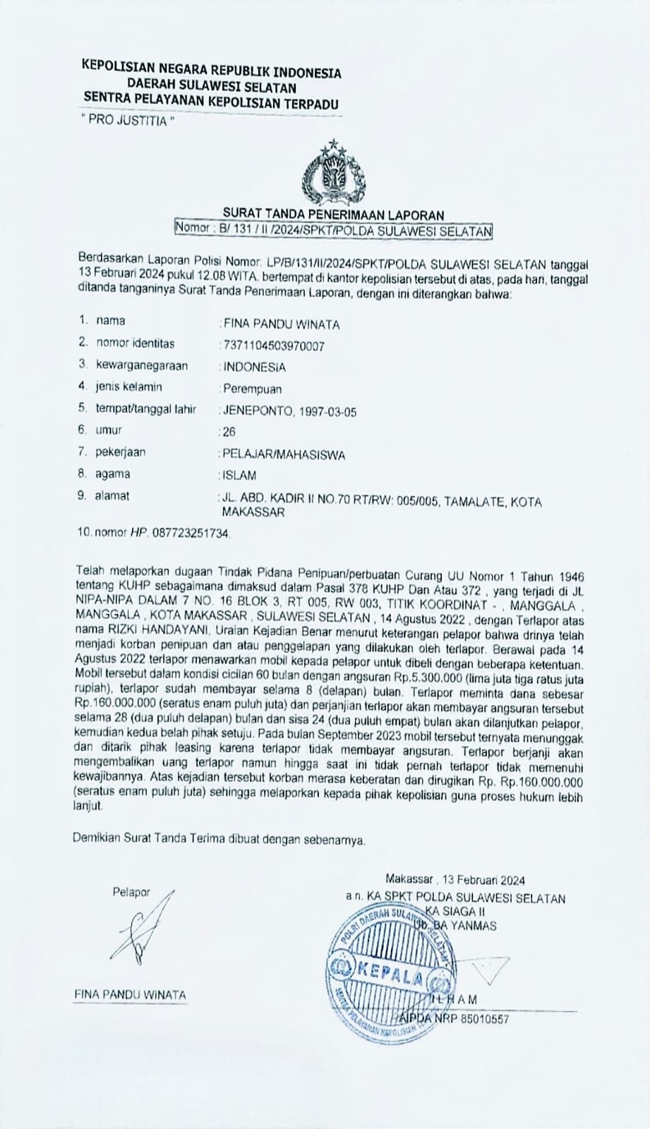 Laporan polisi: LP/B/131/II/2024/SPKT Polda Sulsel. (Foto:Ist)