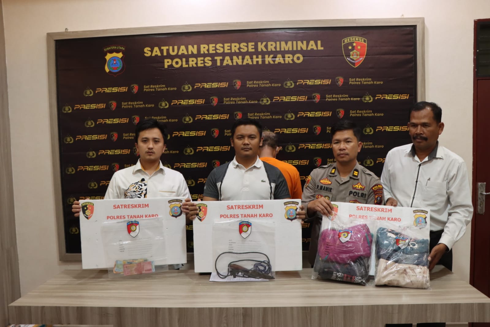 “Hari ini kita merilis keberhasilan penangkapan pelaku pencurian dengan kekerasan yang terjadi di Berastagi. Pelaku berhasil diamankan berkat kuasa Tuhan dan kerja keras dari tim Reskrim Polres Tanah Karo dan Polsekta Berastagi,” ucap Kasat Reskrim.