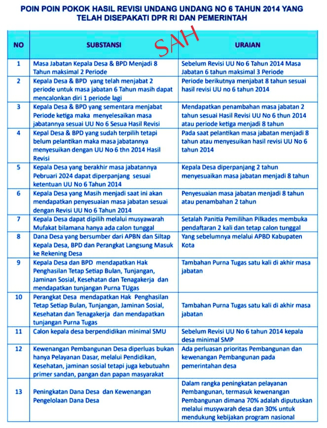 Berikut Poin- Poin Kesepakatan Revisi UU Desa No 9 Tahun 2014 yang Disepakati DPR dan Pemerintah