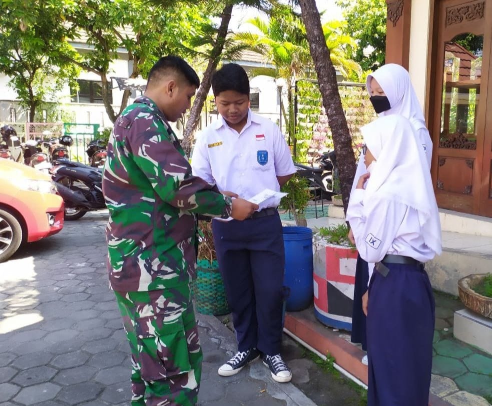 Surakarta | patrolinusantara.press – Babinsa Koramil 04/jebres Kodim 0735/Surakarta Serda Ady Tri P melaksanakan kegiatan komunikasi sosial ( Komsos) dengan anak sekolah SMP 14 Purwodiningratan, Bertempat di kelurahan Purwodiningratan Kecamatan Jebres Kota Surakarta, Senin (12/06/2023).