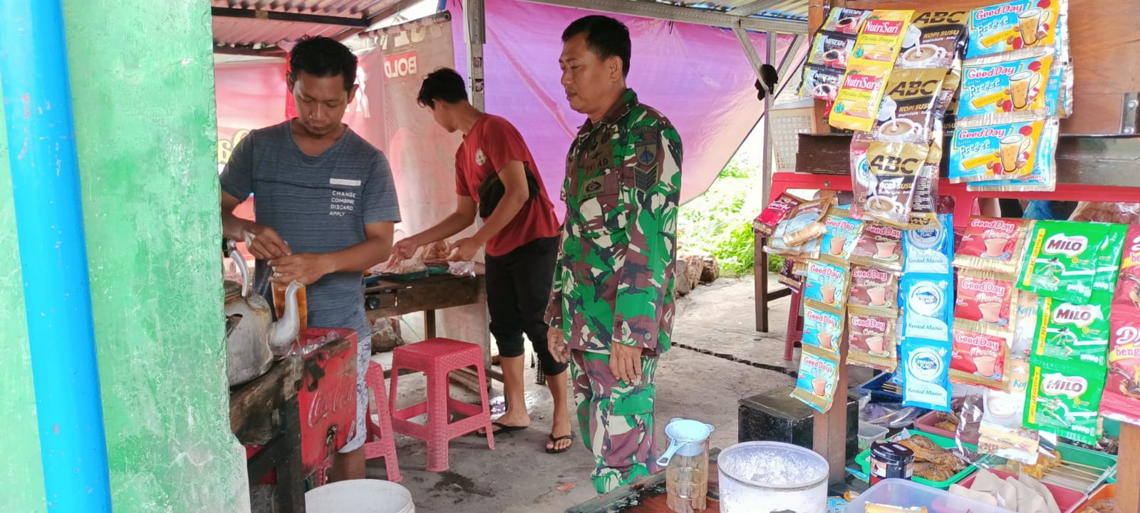 Surakarta | patrolinusantara.press – Babinsa Kelurahan Kepatihan Kulon Koramil 04/Jebres Kodim 0735/Surakarta, Serma Teguh Susanto melaksanakan Komunikasi Sosial (Komsos) bersama pedagang penjual angkringan di sepanjang Jl. AR. Hakim Kelurahan Kepatihan Kulon, Kecamatan Jebres, Senin (18/04/2023).