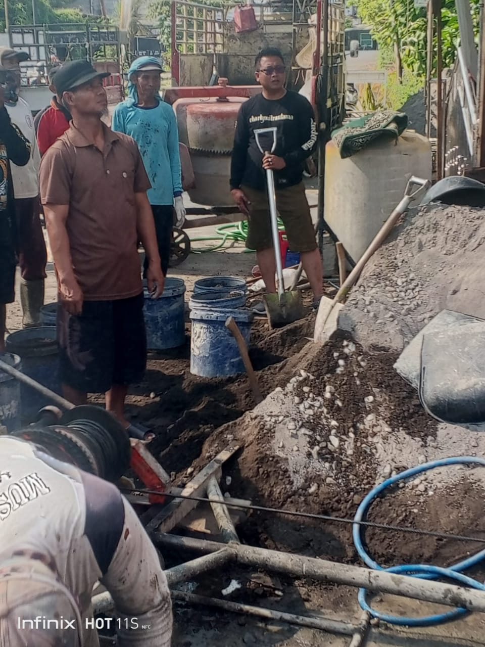 Mukit (kaos hitam) dalam kesempatan kerja bakti di salah satu wilayah di Pati Perbesar