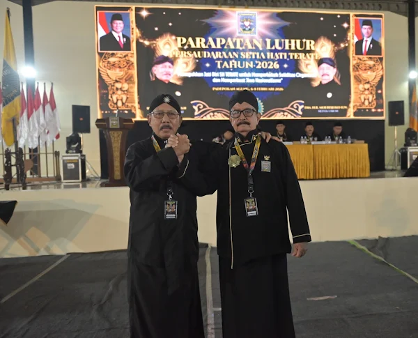 Madiun – R. Moerdjoko H.W kembali terpilih secara aklamasi sebagai ketua umum Persaudaraan Setia Hati Terate (PSHT) Pusat Madiun periode 2026–2031 dalam rapat pleno Parapatan Luhur (Parluh) 2026, Sabtu (7/2).